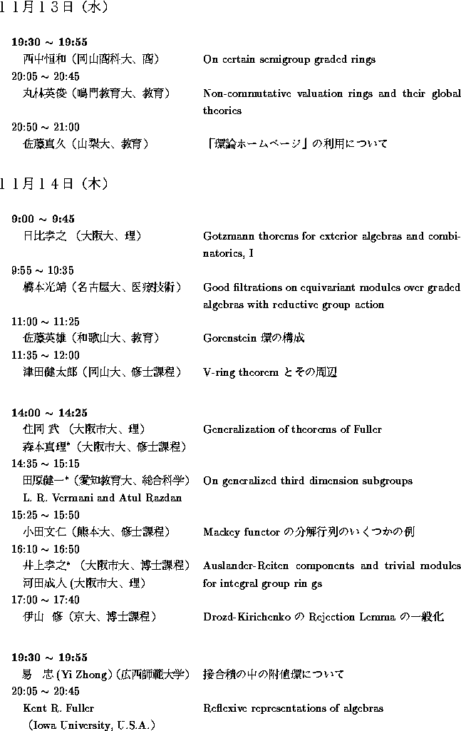 第29回「環論および表現論シンポジウム」宿泊申し込み